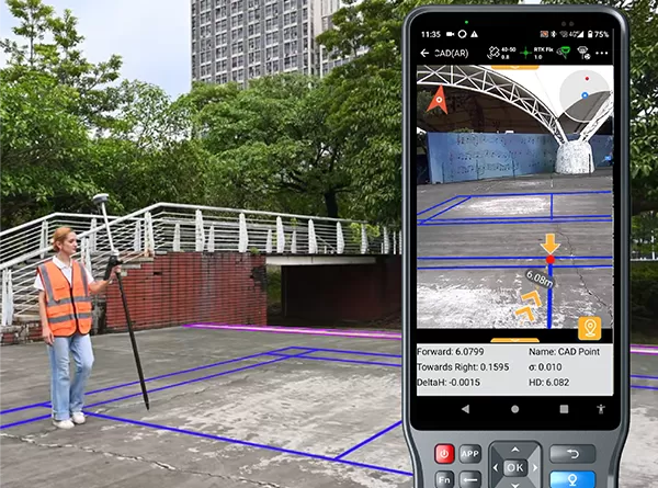 A high-performance CAD engine combined with real-scene imagery allows users to stake out directly from visual and CAD views.